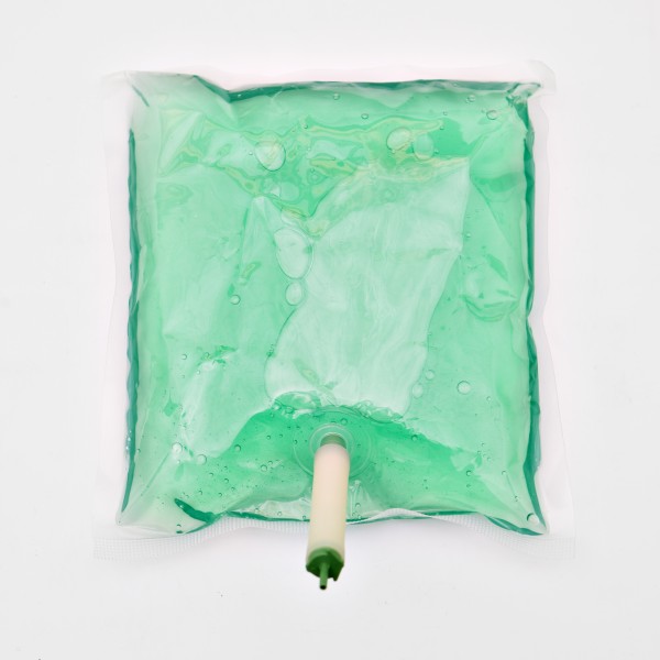 A green colored blend of mild surfactants with emollients and Panthenol, packaged in a "high volume" pouch.
