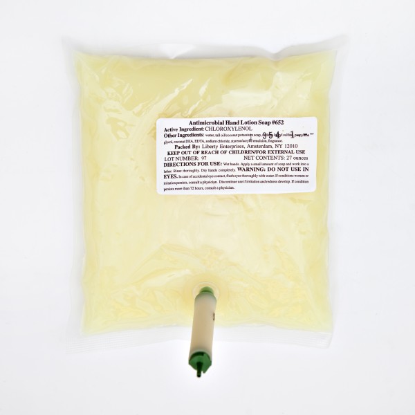 Creamy rich surfactant blend containing chloroxylenol antimicrobial agent, packaged in a "high volume" nozzle pouch.