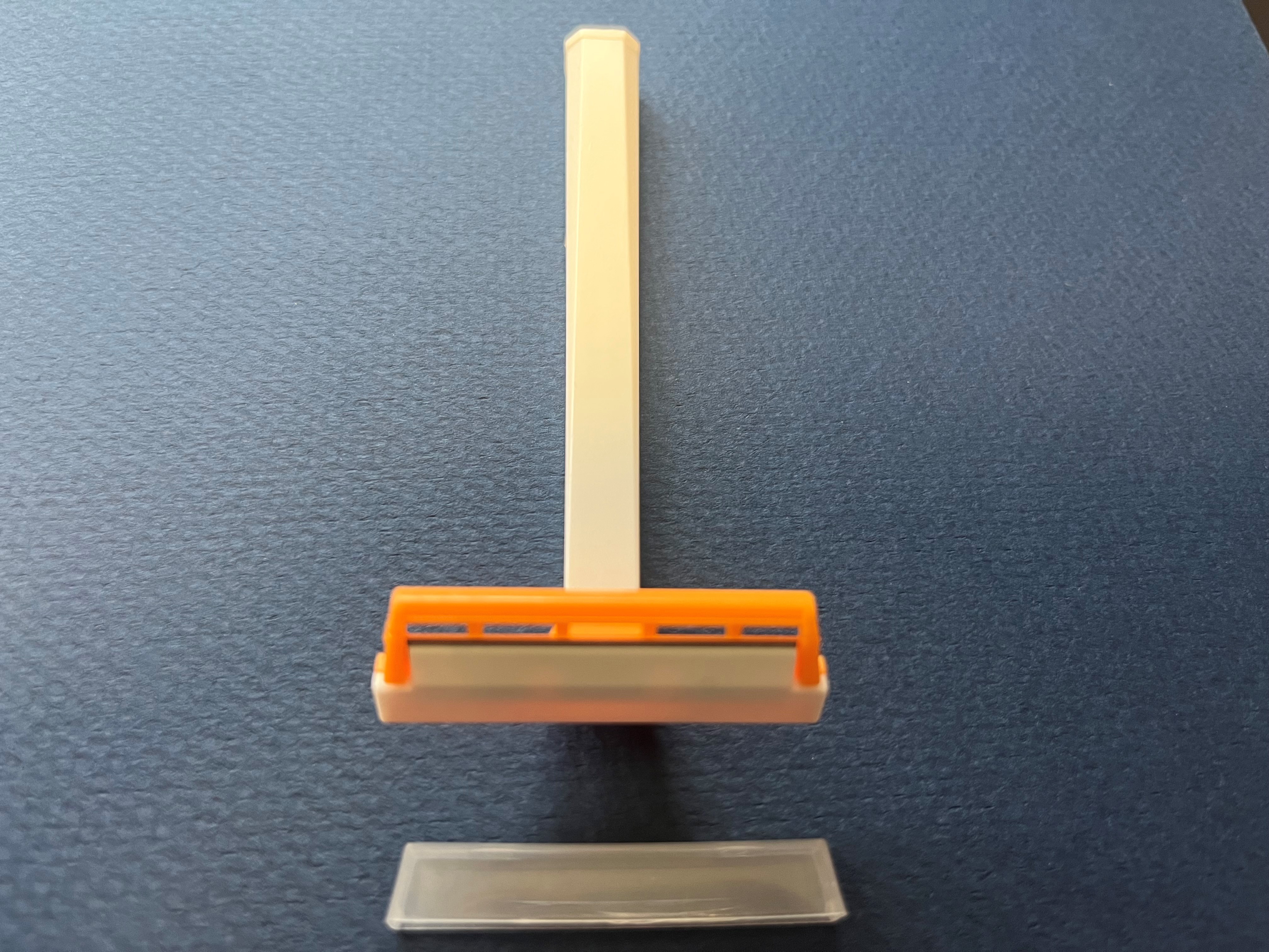 Disposable razor made of stainless steel with molded polystyrene and fixed head. Priced per case of 720.
