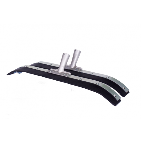 Same heavy-duty construction and high grade rubber as straight squeegee. Curved to gather water around drains and pick-up vessels.
