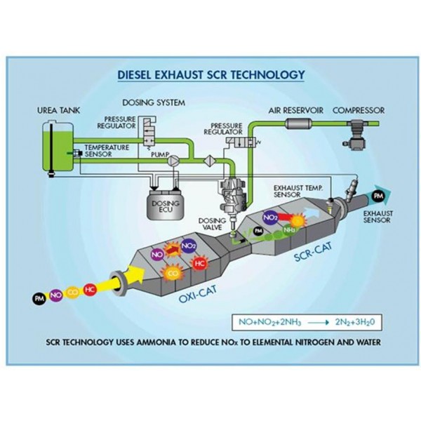 Diesel Exhaust Fluid is produced to an international standard (ISO 22241). To meet 2010 EPA Diesel Emission Standards to reduce the amount of NOx emitted by diesel engines, several engine manufactures employed Selective Catalytic Reduction (SCR) as an after-treatment technology combined with Exhaust Gas Recirculation (EGR).
