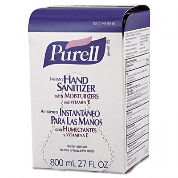 - PURELL Advanced Hand Sanitizer Gel, 800 mL bag-in-box refill, is an antimicrobial gel that contains 62 percent ethyl alcohol to help reduce the number of germs on hands, and moisturizers to help keep skin hydrated. This refill bag fits Accent 800 mL dispensers (sold separately) and is sealed to help reduce potential germ exposure.